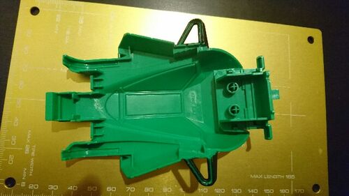 こんばんは。お~ふぁくとりーです。さて、さっそくですがバーニングサンの改造に取りかかりますか。 まずはボディの肉抜きをします。 裏側には肉抜きしやすいように溝があるので、カッターで少しずつ切っていきます。 全部の窓を抜いてしまうと、強度が弱い…